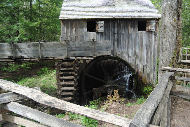This was the day we had planned to spend in the Smoky Mountains! I have been planning this day for weeks. I had a whole list of things I wanted to see and hike in this one day. I had high expectations. Unfortunately Kevin was sick, so I had to do this day by myself. We started the day off with a big breakfast at the 3 Little Bears Pancake House. It was yummy. I had peanut butter banana pancakes and the kids had chocolate chip pancakes. After breakfast we headed to Cade's Cove. This was over an hours drive. It is a 7 mile loop through a beautiful area of the Smoky Mountains. We stopped at the old Baptist Church and the Homestead sites as well as the grist mill and information center. I was very, very determined to see a bear on this trip. It was almost comical with the kids because I said it so many times and had so many "is that a bear!?" sightings. Well, I did get see a bear! Actually we saw several, including a mama and baby. We got out and watched them (from a distance) and took lots of pictures. After Cade's Cove, we hiked to a waterfall called Spruce Flat Falls. It was a 2 mile hike that was pretty intense, but the views were AMAZING! We made it to the waterfall and enjoyed some time hanging out at the falls. We decided to have our picnic lunch in this area and then headed back toward the center of the mountains to Clingmans Dome. This is the highest point of the Smoky's. It is over 6,000 feet high! I seriously felt as though I was at the top of the world! It was super cold up at the top and very windy. The temp in my car said 49. With the wind, it felt more like 39. It was 80 degrees back at our cabin! We made it to the trail for the Dome and climbed the 1/2 mile to the top. We could see for miles! It was pretty awesome. I had wanted to do Laurel Falls also, but we ran out of time (I over planned apparently). But that's ok, we got to do that Saturday as you will soon find out. After our long day in the Mountains, we headed back to get Kevin (he felt better) and go grab dinner. Kevin picked our dinner spot- Calhouns. They claim to have the best ribs in the world. Kevin said they do not. They rank at the bottom of the list of good rib restaurants. (He is a rib fanatic). I had a smoked chicken, not impressed with that either. So we give this place 2 thumbs down. This day was my favorite I think!