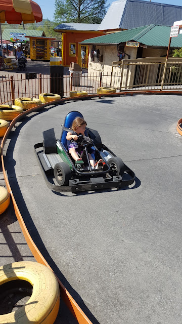 Day 4: Dollywood is closed on Tuesday's in April, so we couldn't go back for the full day until Wednesday. So we went into Gatlinburg. We all did the Mountain Coaster first. You are pulled up to the top of the mountain and you get to race back down in a cart you control the speed of. Very cool! After we road the coaster we spent the afternoon walking through the shops in downtown Gatlinburg. For dinner, we gave the Alimo Steakhouse a shot. We were NOT impressed. But we made up for it with ice cream at Marble Slab!